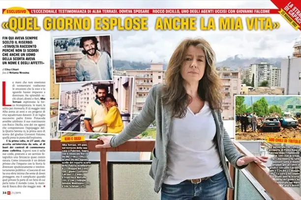 Le mani che non smettono di tormentarsi tradiscono le emozioni che la voce e lo sguardo hanno imparato a dominare. Ha splendidi occhi chiari, diretti e fieri, Alba Terrasi: esprimono la forza riconquistata; le mani, la salita per ritrovarla. Il 23 maggio 1992 Alba aveva 22 anni e un progetto di vita squadernato davanti: il 20 luglio successivo padre Ennio Pintacuda avrebbe celebrato il suo matrimonio con Rocco Dicillo, uno dei tre agenti che componevano l’equipaggio della Quarto Savona 15, la prima auto di scorta del giudice Giovanni Falcone, quella presa in pieno dall’esplosivo.