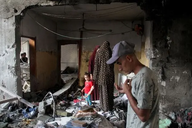 Gli occhi, spaventati, interrogano attorno i grandi che, sgomenti, sembrano non accorgersi di lui. A quell’età nel mezzo del disastro, tra le macerie della scuola che conteneva sfollati palestinesi colpita nella Striscia Gaza, non significano niente le parti in campo, le ragioni contingenti e profonde che stanno dietro ai conflitti. Non significano niente le spiegazioni degli uni e degli altri: Israele che dice: "nella scuola c’erano terroristi"; Hamas che risponde: "c’erano solo civili".