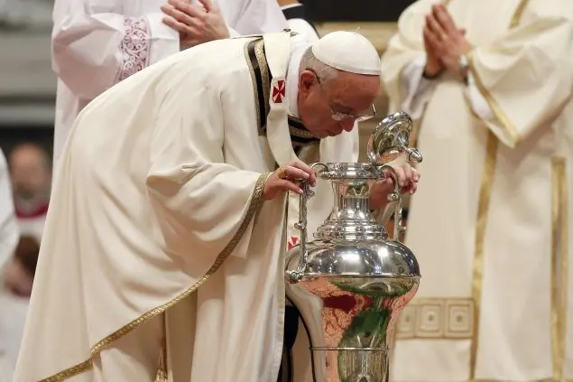 Parla della gioia del sacerdote, papa Francesco. E chiede a tutti i preti, a quelli giovani e a quelli anziani, a quelli sani e a quelli malati, di riscoprire la gioia incorruttibile che l'ordinazione sacerdotale ha dato a ciascuno. Nella Messa crismale del Giovedì Santo, che papa Francesco celebra nella Basilica vaticana, il Papa ricorda che «il Signore ci ha unto in Cristo con olio di gioia e questa unzione ci invita a ricevere e a farci carico di questo grande dono: la gioia, la letizia sacerdotale. La gioia del sacerdote è un bene prezioso non solo per lui ma anche per tutto il popolo fedele di Dio: quel popolo fedele in mezzo al quale è chiamato il sacerdote per essere unto e al quale è inviato per ungere. Unti con olio di gioia per ungere con olio di gioia».