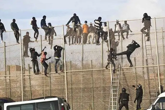 La grande, spietata barriera. Alta sei metri, lunga otto chilometri e mezzo, affilata in cima non dal filo spinato ma dal filo laminato. Per i profughi riuscire a scansare le ferite causate dalle sottili lamette quando hanno la fortuna di arrivare fino in cima è missione impossibile. Tagli profondi per lo più alle mani e ai piedi sono il prezzo del lasciapassare. L’associazione Mani solidali ha fatto un accordo con l’ospedale della vicina città di Tètouan per farvi arrivare i feriti. Con interventi gratuiti pagati dall’associazione. Non esiste un protocollo di accoglienza, ma soltanto di espulsione. Dunque nel centro di smistamento di Ceuta la media di permanenza dei migranti che arrivano è di pochi giorni. Difficile chiamarlo centro di accoglienza. Nella foresta i volontari stessi arrivano scortati dalla polizia per non rischiare di fare da apripista a chi cerca di raggiungere Ceuta. Vengono distribuiti cibo e medicine. Dal 2014 è nata la carovana per l’assistenza sanitaria. Sono riusciti a distribuire coperte e cibo. Gli immigrati fanno la fila per riceverli. I volontari portano pure cellulari per fare in modo che possano telefonare alle famiglie.
