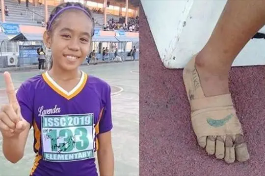Reha ha 11 anni e un talento: corre veloce. Vive a Iloilo nelle Filippine e ai campionati studenteschi ha vinto le finali di 400, 800 e 1500 metri della sua Regione, il Visayas occidentale. Il tutto senza scarpe, perché non può permettersele. Capita a molti ragazzini da quelle parti ma la sua storia sta commovendo il mondo. Anzi lo stanno facendo i suoi esili piedi scattanti, fotografati dal suo allenatore Predirick Valenzuela e resi pubblici in un incontro del Consiglio sportivo delle scuole di Iloilo. Quei piedi scalzi hanno le dita fasciate di bende, cerotti e gesso, per ridurre i traumi della corsa, e fanno tenerezza non solo per quello, ma per l’ingenuità con cui la ragazzina – non l’unica da quelle parti – s’è ingegnata per dare a quella protezione di fortuna la dignità di scarpa tecnica dipingendovi con un pennarello il baffo di una nota marca di scarpe sportive: il pennarello ha dipinto un sogno: arrivare dove arrivano i campioni che con le scarpe chiodate, che lei può solo disegnare, vincono le Olimpiadi.