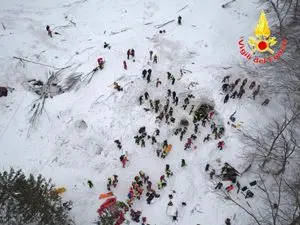 I soccorritori hanno lavorato per tutta la notte, in condizioni estreme, alla ricerca della trentina di dispersi che ancora mancano all'appello. Con le temperature ampiamente sotto lo zero, gli uomini impegnati in una drammatica corsa contro il tempo per strappare alla morte ospiti e personale hanno lavorato grazie all'ausilio delle fotocellule ma a ritmi ridotti: non c'erano infatti le condizioni di sicurezza necessarie per operare in maniera massiccia e, dunque, si è preferito ridurre il numero degli uomini attivati. Nel corso della notte le turbine e le ruspe hanno proseguito inoltre il lavoro per liberare la strada che sale all'hotel e consentire una migliore circolazione dei mezzi di soccorso.