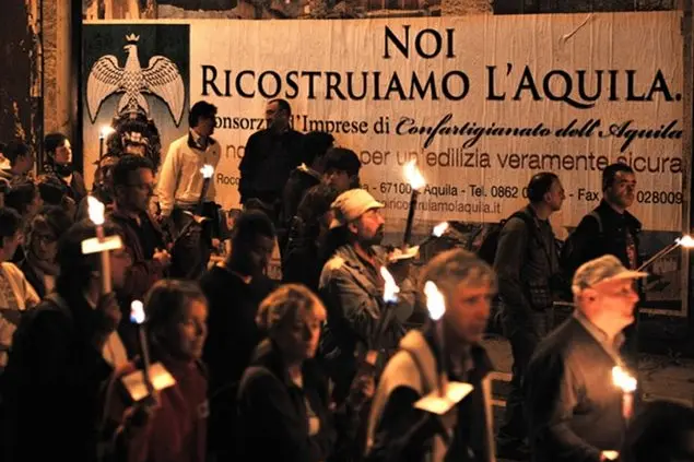 Mentre la terra del Centro-Italia continua a tremare - alle 5,30 di stamattina tra Marche e Umbria è stata registrata una scossa di magnitudo 3 - seimila persone, in una notte illuminata dalla luce delle fiaccole, si sono raccolte all'Aquila, per ricordare le 309 vittime del terremoto del 6 aprile 2009, ma anche le persone scomparse sotto le macerie di altri terremoti e quelle uccise da altra tragedie in altre parti d'Italia.