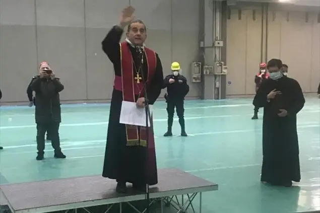 Erano le 10.30 di questa mattina, lunedì 30 marzo, quando l'arcivescovo di Milano, Mario Delpini, accompagnato dal presidente della Fondazione Fiera Enrico Pazzali, dal sindaco Beppe Sala e dal governatore Attilio Fontana, si è recato presso la Fiera di Milano dove nel padiglione 1 e 2 si stanno ultimando i lavori di realizzazione del nuovo ospedale. Creato per dare una risposta concreta all'emergenza Covid-19 e dove arriveranno i primi pazienti tra domenica e lunedì.