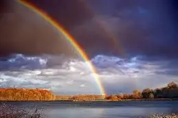 I raggi solari ovviamente colpiscono tutte le goccioline presenti in quel momento nell’aria ma, dopo la doppia deviazione da parte delle gocce, raggiungono il nostro occhio soltanto se l’angolo formato tra il raggio uscente che arriva al nostro occhio e quello entrante è di 40-42° . La posizione dell’arcobaleno nel cielo è solo apparente tanto che decresce e si allontana verso l’orizzonte man mano che il sole si innalza nel cielo fino a scomparire quanto il sole è allo zenit. Inoltre, via via che l’osservatore si avvicina, l’arcobaleno sembra allontanarsi perché viene “ricostruito” dalle nuove goccioline di pioggia, più lontane, che soddisfano la condizione dei 42 gradi.