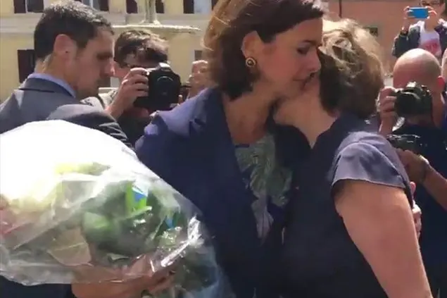 Sulla facciata di Palazzo Farnese, sede del’Ambasciata di Francia in Italia, le bandiere della Francia e dell’Europa sono abbassate in segno di lutto. Sulle transenne che proteggono il palazzo, protetto dai militari italiani, sono stati appoggiati dei mazzi di fiori e su un tavolino c’è un registro dove si possono scrivere i messaggi di condoglianze. Poco prima di mezzogiorno arriva Laura Boldrini, presidente della Camera dei deputati. Porta anche lei un mazzo di fiori. Boldrini abbraccia l’ambasciatrice francese Catherine Colonna e il ministro francese per la riforma dello Stato, Jean-Vincent Placé. La sera prima, alla festa del 14 luglio nel cortile dell’Ambasciata, avevano brindato insieme in un clima sereno, nonostante l’anno difficile lasciato alle spalle. Verso le 22, partite le autorità, la festa aveva assunto un carattere popolare, con la presenza di tanti giovani della comunità francese di Roma. La Banda dei Carabinieri aveva lasciato spazio a una orchestrina jazz. C’era anche chi ballava negli spazi del giardino. Poi sono arrivate le notizie da Nizza. Oggi i volti sono gravi e tesi. Laura Boldrini sale al primo piano nel grande Salone d’Ercole e scrive nel registro il suo cordoglio: “Siamo figli di una stessa famiglia e insieme andiamo avanti, insieme reagiremo, insieme continueremo a credere nei nostri valori”. L’ambasciatrice Colonna ripete le parole pronunciate nella notte dal presidente Hollande: “La Francia è sconsolata, è afflitta, ma è forte e sarà sempre più forte, ve lo assicuro, di quei fanatici che oggi la vogliono colpire”. L’ambasciatrice Colonna ricorda che dopo la strage alla redazione di Charlie Hebdo e al supermercato ebraico del gennaio 2015 il premier Matteo Renzi portò il suo cordoglio in Ambasciata insieme al ministro degli esteri, Paolo Gentiloni.