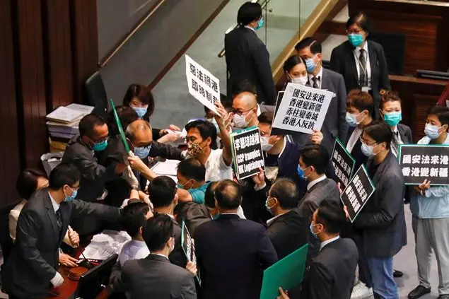 (Foto Reuters: proteste dei legislatori democratici di Hong Kong)