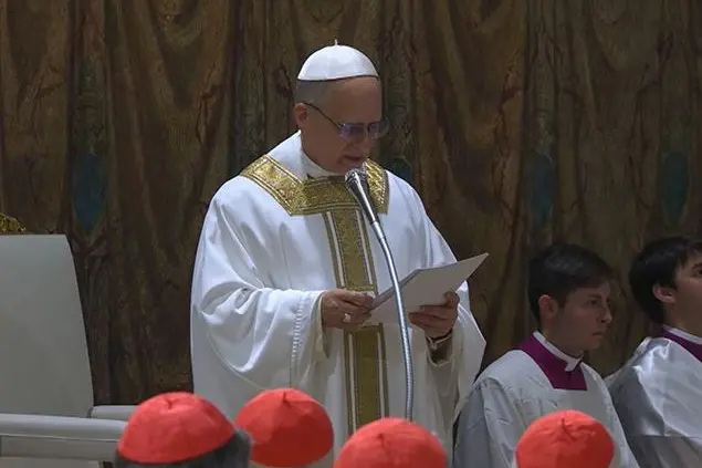 Celebra la prima messa nella cappella Sistina dove, meno di 24 ore prima, era ancora un semplice cardinale elettore. Comincia con un saluto a braccio in inglese, Papa Leone XIV, ricordando ai cardinali che lo hanno eletto che «le parole del Salmo responsoriale: "Canterò un canto nuovo al Signore, perché ha compiuto meraviglie". E non solo con me», conitnua papa Leone, «ma con tutti noi. Miei fratelli cardinali, mentre celebriamo questa mattina, vi invito a riconoscere le meraviglie che il Signore ha compiuto, le benedizioni che il Signore continua a riversare su tutti noi attraverso il Ministero di Pietro. Mi avete chiamato a portare quella croce e ad essere benedetto con questa missione, e so di poter contare su ognuno di voi affinché cammini con me, mentre continuiamo come Chiesa, come comunità di amici di Gesù, come credenti ad annunciare la Buona Novella, ad annunciare il Vangelo». Legge poi in italiano. Nella sua omelia sul Vangelo di Matteo che parla proprio dell’investitura di Pietro da parte di Gesù come capo della Chiesa, ricorda la domanda centrale del Maestro a Pietro sulla sua identità e sulla risposta di questi: «Tu sei il Cristo, il Figlio del Dio vivente». È così che Pietro «esprime in sintesi il patrimonio che da duemila anni la Chiesa, attraverso la successione apostolica, custodisce, approfondisce e trasmette. Gesù è il Cristo, il Figlio del Dio vivente, cioè l’unico Salvatore e il rivelatore del volto del Padre». Dio si è reso, incarnandosi in un bambino, «vicino e accessibile agli uomini». E, continua il Papa, «ci ha mostrato così un modello di umanità santa che tutti possiamo imitare, insieme alla promessa di un destino eterno che invece supera ogni nostro limite e capacità. Pietro, nella sua risposta, coglie tutte e due queste cose: il dono di Dio e il cammino da percorrere per lasciarsene trasformare, dimensioni inscindibili della salvezza, affidate alla Chiesa perché le annunci per il bene del genere umano».