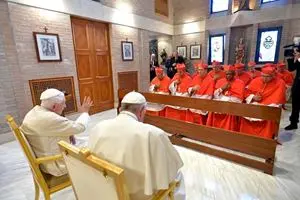 Al centro del racconto evangelico che abbiamo ascoltato (Mc 6,30-37a) c’è la «compassione» di Gesù (cfr v. 34). Compassione, parola-chiave del Vangelo; è scritta nel cuore di Cristo, è scritta da sempre nel cuore di Dio. Nei Vangeli vediamo molte volte Gesù che sente compassione per le persone sofferenti. E più leggiamo, più contempliamo, e più comprendiamo che la compassione del Signore non è un atteggiamento occasionale, sporadico, ma è costante, anzi, sembra essere l’atteggiamento del suo cuore, nel quale si è incarnata la misericordia di Dio. Marco, ad esempio, riferisce che quando Gesù incominciò ad andare per la Galilea predicando e scacciando i demoni, «venne da lui un lebbroso, che lo supplicava in ginocchio e gli diceva: “Se vuoi, puoi purificarmi!”. Ne ebbe compassione, tese la mano, lo toccò e gli disse: “Lo voglio, sii purificato!”» (1,40-42). In questo gesto e in queste parole c’è la missione di Gesù Redentore dell’uomo: Redentore nella compassione. Lui incarna la volontà di Dio di purificare l’essere umano malato dalla lebbra del peccato; Lui è “la mano tesa di Dio” che tocca la nostra carne malata e compie quest’opera colmando l’abisso della separazione. Gesù va a cercare le persone scartate, quelli che ormai sono senza speranza. Come quell’uomo paralitico da trentotto anni, che giace presso la piscina di Betzatà, aspettando invano che qualcuno lo aiuti a scendere nell’acqua (cfr Gv 5,1-9). Questa compassione non è spuntata a un certo punto della storia della salvezza, no, è sempre stata in Dio, impressa nel suo cuore di Padre. Lo vediamo nel racconto della vocazione di Mosè, quando Dio gli parla dal roveto ardente e gli dice: «Ho osservato la miseria del mio popolo in Egitto e ho udito il suo grido […]: conosco le sue sofferenze» (Es 3,7). L’amore di Dio per il suo popolo è tutto impregnato di compassione, al punto che, in questa relazione di alleanza, ciò che è divino è compassionevole, mentre purtroppo sembra che ciò che è umano ne sia tanto privo, tanto lontano. Lo dice Dio stesso: «Come potrei abbandonarti, Efraim, come consegnarti ad altri, Israele? […] Il mio cuore si commuove dentro di me, il mio intimo freme di compassione. […] Perché sono Dio e non uomo, sono il Santo in mezzo a te e non verrò nella mia ira» (Os 11,8-9). I discepoli di Gesù dimostrano spesso di essere senza compassione, come in questo caso, di fronte al problema delle folle da sfamare. Loro in sostanza dicono: “Che si arrangino…”. È un atteggiamento comune a noi umani, anche quando siamo persone religiose o addirittura addette al culto. Il ruolo che occupiamo non basta a farci essere compassionevoli, come dimostra il comportamento del sacerdote e del levita che, vedendo un uomo moribondo sul ciglio della strada, passarono oltre dall’altra parte (cfr Lc 10,31-32). Dentro di sé avranno detto: “Non tocca a me”. Ci sono sempre delle giustificazioni; a volte sono anche codificate e danno luogo a degli “scarti istituzionali”, come nel caso dei lebbrosi: “Certo, devono stare fuori, è giusto così”. Da questo atteggiamento molto, troppo umano derivano anche strutture di non-compassione. A questo punto possiamo domandarci: siamo coscienti, noi per primi, di essere stati oggetto della compassione di Dio? Mi rivolgo in particolare a voi, fratelli Cardinali e in procinto di diventarlo: è viva in voi questa consapevolezza? Di essere stati e di essere sempre preceduti e accompagnati dalla sua misericordia? Questa coscienza era lo stato permanente del cuore immacolato della Vergine Maria, che loda Dio come il “suo salvatore” che «ha guardato l’umiltà della sua serva» (Lc 1,48). A me fa tanto bene rispecchiarmi nella pagina di Ezechiele 16: la storia d’amore di Dio con Gerusalemme; in quella conclusione: «Io stabilirò la mia alleanza con te e tu saprai che io sono il Signore, perché te ne ricordi e ti vergogni e, nella tua confusione, tu non apra più bocca, quando ti avrò perdonato quello che hai fatto» (Ez 16,62-63). Oppure in quell’altro oracolo di Osea: «La condurrò nel deserto e parlerò al suo cuore. […] Là mi risponderà come nei giorni della sua giovinezza, come quando uscì dal paese d’Egitto» (2,16-17). È viva in noi la coscienza di questa compassione di Dio per noi? Non si tratta di una cosa facoltativa, e nemmeno, direi, di un “consiglio evangelico”. No. Si tratta di un requisito essenziale. Se io non mi sento oggetto della compassione di Dio, non comprendo il suo amore. Non è una realtà che si possa spiegare. O la sento o non la sento. E se non la sento, come posso comunicarla, testimoniarla, donarla? Concretamente: ho compassione per quel fratello, per quel vescovo, quel prete?… Oppure sempre distruggo con il mio atteggiamento di condanna, di indifferenza? Da questa consapevolezza viva dipende anche la capacità di essere leale nel proprio ministero. Anche per voi fratelli Cardinali. La disponibilità di un Porporato a dare il proprio sangue – significata dal colore rosso dell’abito – è sicura quando è radicata in questa coscienza di aver ricevuto compassione e nella capacità di avere compassione. Diversamente, non si può essere leali. Tanti comportamenti sleali di uomini di Chiesa dipendono dalla mancanza di questo senso della compassione ricevuta, e dall’abitudine di guardare da un’altra parte, dall’abitudine dell’indifferenza. Chiediamo oggi, per intercessione dell’Apostolo Pietro, la grazia di un cuore compassionevole, per essere testimoni di Colui che ci ha guardato con misericordia, ci ha eletti, ci ha consacrati e ci ha inviati a portare a tutti il suo Vangelo di salvezza.