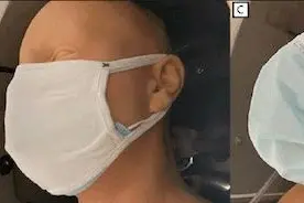 2) una mascherina chirurgica identica alla precedente cui è stata sovrapposta una mascherina cosiddetta di comunità, cioè di stoffa.