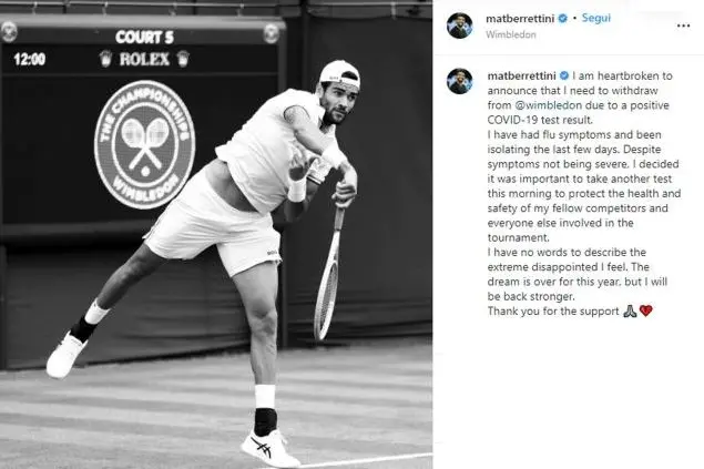 Eppure da qualche giorno non usciva dall’appartamento che aveva affittato. Ieri giorno dell’esordio la spiegazione: «Ho il cuore spezzato nell’annunciarvi che devo ritirarmi da Wimbledon a causa di un test positivo al Covid. Ho avuto sintomi influenzali e sono stato isolato negli ultimi giorni, benché i sintomi fossero lievi, ho ritenuto importante fare un altro test questa mattina per proteggere la sicurezza e la salute dei miei avversari e di tutte le persone coinvolte nel torneo. Non ho parole per descrivere il dispiacere che provo. Il sogno per quest’anno è andato, ma tornerò più forte. Grazie per il sostegno».