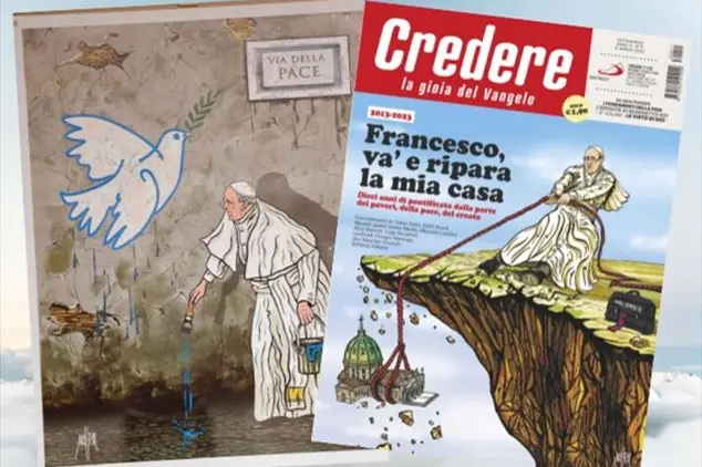 In questi anni il Papa ha ispirato più volte Maupal. E, per il decimo anniversario del pontificato, lo street writer cresciuto all’ombra del Cupolone ha realizzato per Credere la copertina in cui racconta «come questo Papa stia tentando di ricostruire la Chiesa, proprio come san Francesco da cui ha preso il nome». Un’opera necessaria, dice Maupal: «Vivo molto la strada, ascolto, osservo le persone e percepisco un progressivo allontanamento dalla Chiesa istituzione, ma non da Gesù». Maupal usa la sua arte «per stimolare il pensiero, lanciare dei messaggi». Studi al Liceo artistico e all’Accademia delle belle arti, la prima esposizione in una galleria dei Parioli, i primi guadagni reinvestiti in materiali per il disegno. Si inventa una sua tecnica – spray su lana di acciaio – e, in parallelo, per campare, lavora da cameriere, lavapiatti, traslocatore. Oggi vive del suo lavoro, sul suo sito (www.maupal.net) arrivano richieste di serigrafie o poster stampati, insieme a migliaia di domande di amicizia social. A maggio farà una mostra a Montecatini
