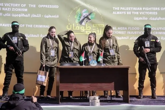 I numeri si spiegano con gli accordi: uno scambio in ragione di a 1 a 30 se si tratta di civili israeliani, uno a 50 se si tratta di militari. I media del mondo definisco show il contesto della liberazione, in cui gli ostaggi sono esibiti come trofei, come prova di forza. Riconoscono nelle modalità pubbliche e sapientemente orchestrate, la regia di un sinistro teatro, nel quale Hamas vuole dimostrare comunque di avere vinto, lo fa - come sempre si fa in guerra - sul corpo di quattro soldatesse di vent’anni, che aveva mostrato ferite e rapite dai loro letti il 7 ottobre, e ora rende in una divisa militare non loro, a significare il loro status di membri dell’esercito (Israele impone una lunga leva obbligatoria a uomini e donne), costringendole a una passerella tra la folla, festante per la liberazione dei detenuti, tra militanti armati fino ai denti, sotto cartelli che recano in arabo scritte contro i «nazisti sionisti» e lanci di caramelle.