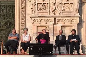 È un viaggio tra le gioie e le fatiche delle famiglie la festa della diocesi di Milano Sante subito! Famiglie 2022 in preparazione al X Incontro Mondiale delle famiglie che si terrà a Roma con papa Francesco dal 22 al 26 giugno. Là parteciperanno solo piccole delegazioni di ogni Paese, mentre tutte le diocesi sono state invitate a promuovere iniziative locali e diffuse. Nel caldo torrido di un sabato di giugno tremila persone si sono raccolte sul sagrato del Duomo per festeggiare la grande famiglia umana. Nella cornice di piazza Duomo, la kermesse tra momenti di festa, canti, animazioni della Fom, testimonianze e preghiere è stata condotta dall’attore romano Giovanni Scifoni reduce dal successo su rai Uno di Doc nelle tue mani, autore e ideatore di tanti programmi religiosi per Tv2000. Sullo sfondo, in filigrana il testo delle Nozze di Cana a guidare la scelta anche delle testimonianze. Un momento è stato dedicato al ricordo del VII Incontro mondiale delle famiglie che proprio dieci anni fa con Benedetto XVI venne festeggiato a Milano.