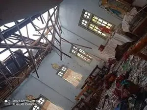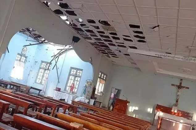 (In queste foto di fortuna, la chiesa di Kayang, in Myanmar, dopo il bombardamento dall'esercito, che ha fatto quattro vittime tra i fedeli che affollavano il tempio. I superstiti si sono rifugiati sui monti circostanti e sono allo stremo)