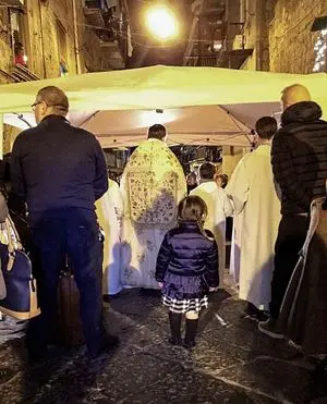 Tra quei palazzi stretti che si affacciano l’uno dentro l’altro, don Giuseppe Carmelo ha voluto confezionare amore. Ha allestito l’altare tra i portoni dei palazzi, quegli stabili trasformati in rivendite di morte, dove alcuni degli indagati oggi vivono agli arresti domiciliari. Padre Giuseppe conosce bene quei luoghi e conosce bene anche quelle famiglie. «Siamo scesi in strada non per denunciare ma per annunciare». Tende la mano a coloro che hanno scelto l’illegalità e lo fa insieme a tutta la comunità. Attorno a quel piccolo tavolino di plastica trasformato in un sacro altare c’è la luce. «Abbiamo distribuito a tutti piccole candele che rappresentano proprio la luce che può entrare nelle nostre case - spiega il parroco - la candela rappresenta una possibilità, la preghiera e se si ha fede Gesù concederà una seconda opportunità».