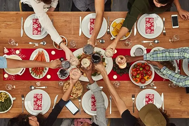 Un’altra regola delle feste è evitare di offrire già a inizio pasto le classiche bevande alcoliche, come vino, spumante o prosecco, che forniscono calorie vuote e quindi non apportano alcun tipo di sostanza nutritiva nonostante l’elevato apporto energetico. Al momento degli antipasti, per sopperire alla loro mancanza, si possono mettere in tavola le acque aromatizzate, colorate e allegre, che si ottengono diluendo gli estratti di verdura (come carote e barbabietole) oppure mettendo in infusione radici come lo zenzero o erbe aromatiche (per esempio foglie di basilico o menta).