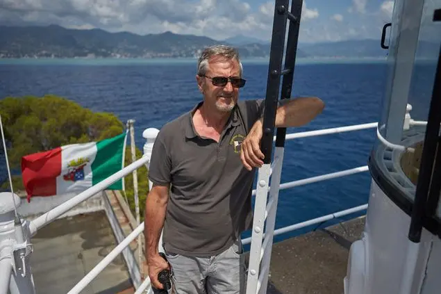Si è liberato finalmente dell’orologio. La televisione non la guarda più, anche se nel soggiorno ce n’è una bella grande («l’ho montata un mese fa e non l’ho ancora accesa»). Il cellulare è un ingombro fastidioso: «Lo tengo solo per ragioni di servizio, ma ormai lo uso pochissimo. Non prende neanche così bene, quassù». Di notte e di giorno, con la luna o la tempesta, Paolo Bassignani è prigioniero felice del “suo” faro come di una torre d’avorio che molti gli invidiano. Dalle finestre di casa (salone, cucina, due camere e bagno, 100 metri quadrati in tutto) s’apre una vista mozzafiato: il blu intenso del mare, i pini che crescono tenaci sulla scogliera, i gabbiani. Sullo sfondo, ecco il Golfo del Tigullio, Santa Margherita Ligure, Rapallo, Chiavari fino a Sestri Levante. Un piccolo promontorio vela le Cinque Terre. Non si vede Portofino con la celebre piazzetta e le casette colorate. Quest’avamposto sulla bellezza è rimasto sguarnito per quattordici anni, dopo che il vecchio guardiano, Roberto Racalbuto, è andato in pensione nel 2004. Dal 29 maggio scorso, però, il faro di Punta Portofino è tornato ad avere il suo guardiano: «Ho lavorato per venticinque anni al Comando fari di La Spezia come addetto alla manutenzione», racconta Bassignani, «dopo aver frequentato il corso per farista, nel novembre 2017 ho fatto domanda per diventare guardiano e nel giro di sei mesi mi hanno assegnato qui».