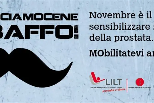 E’ molto simpatica la compagna “Non facciamocene un baffo!”, un progetto di sensibilizzazione di Lilt Milano, che attraverso visite gratuite, dedicati agli uomini presso gli Spazi Prevenzione, sostiene la campagna internazionale di prevenzione del tumore alla prostata Movember, a cui i volontari partecipano facendosi crescere i baffi. Li terranno durante tutto il mese di novembre, per essere parte integrante del progetto e una sorta di “manifesto vivente” del proprio impegno. (Per aderire alla campagna di reclutamento è possibile rivolgersi a: Settore Volontariato – Lega Italiana per la Lotta contro i Tumori Tel. - 02 49521 - volontariato@legatumori.mi.it - www.legatumori.mi.it) [i]