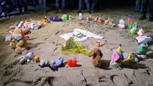 Sulla spiaggia domenica 25 febbraio notte c’erano 94 luci, «94 come i corpi che ha restituito il mare». E 35 peluche come i piccoli che non hanno mai raggiunto la terra “promessa”.