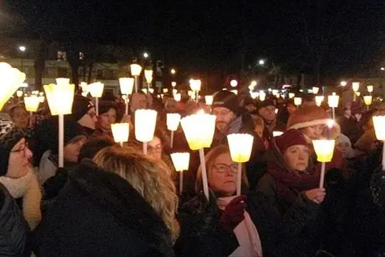 Almeno duemila fiaccole, tutte rigorosamente gialle, hanno riempito la piazza di Fiumicello, paese nativo di Giulio Regeni. Duemila fiaccole e molte più persone che le hanno alzate al cielo. Nemmeno il freddo tagliente di questa sera del 25 gennaio le ha scoraggiate. Giovani, bambini, anziani, operatori della comunicazione, amici, autorità: tutti stretti attorno a Paola, Claudio e Irene Regeni. Perché a un anno dalla sparizione di Giulio la verità è ancora lontana, ma la determinazione nel chiederla è più forte che mai.