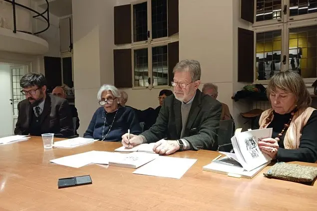 Nella foto, da sinistra: gli autori Stefano Bodini e Carla Bianchi Iacono, con Ettore Kluzer, presidente dell'Ente educativo Mons. A. Ghetti Baden, e Giovanna Maino, figlia di Pia Ucelli