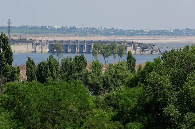 (Foto Reuters: la diga Nova Kakhovka, nella regione di Cherson, dopo il crollo)