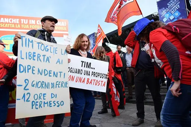 Da sette anni l'azienda usufruisce ammortizzatori sociali. "Oggi più di 30 mila lavoratori sono in contratto di solidarietà, ma tutti questi sacrifici non sono bastati perché la nuova proprietà francese in ossequio a mere logiche finanziarie ha preteso un piano di tagli di quasi due milioni di euro il cui raggiungimento garantirà premi milionari per la dirigenza. Così ci è stato comunicato che dal 1 febbraio non sarebbe stato più valido il contratto aziendale, che garantiva ai lavoratori diritti e salari. Con questo atto unilaterale Tim ha tagliato ulteriormente i nostri stipendi e ha cancellato ferie e permesse retribuiti necessari alla conciliazione dei tempi di vita e di lavoro. Quella stessa azienda che favoleggia di nuove forme di lavoro ha deciso di trasferire forzosamente 265 lavoratori dalle sedi di Torino e di Milano verso Roma, con le conseguenze che tutto ciò potrà comportare"