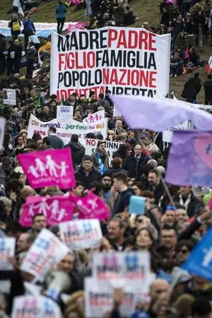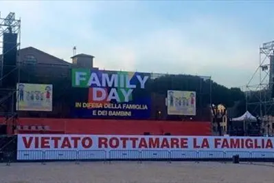 Secondo gli organizzatori il Circo Massimo (capienza riconosciuta: 450 mila persone) era già pieno prima di cominciare. Il Family Day, organizzato contro il disegno di legge Cirinnà che disciplina le unioni omosessuali e per invocare poltiche familiari più efficaci, si presenta colorato e ordinato. Numerosissime le famiglie con bambini, passeggini e carrozzine al seguito. E' una folla sorridente; poche le bandiere, molti i canti e balli intonati e messi in scena. In fondo al Circo Massimo è stato allestito il palco su cui è stato issato uno striscione blu con la scritta "Family Day. In difesa della famiglia e dei bambini".
