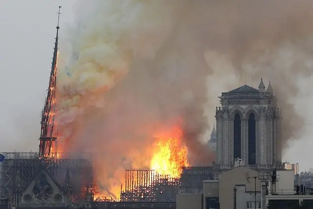 Nella notte di Parigi rischiarata dalle fiamme spettrali che illuminano lo scheletro di Notre Dame gruppi di fedeli, i volti sgomenti, pregano inginocchiati e recitano litanie, molti col rosario in mano.  Il fuoco divora l’antichissimo terrazzo, soprannominato dagli architetti e dagli storici dell'arte "la foresta" per l'intreccio geniale dei legni costruito dai carpentieri medievali. Ma brucia anche la nostra “anima mundi”, creando un vuoto incolmabile.