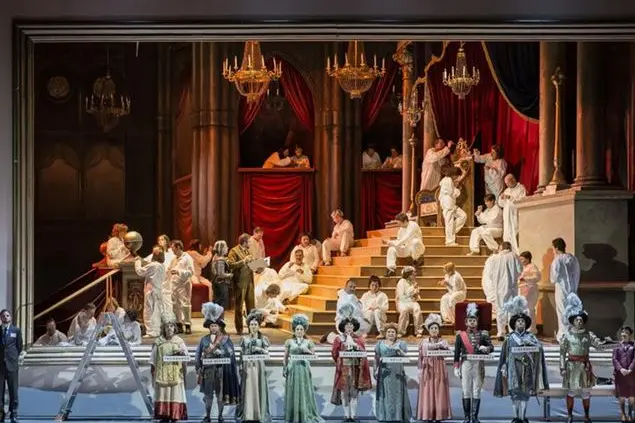Michieletto, come sempre, si lascia guidare dal libretto, ma ignora le didascalie del librettista. “Le didascalie”, spiega, “mi fanno venire in mente i cartelli gialli che nella mia Venezia indicano ai turisti Piazza San Marco o il Ponte di Rialto. Tutti seguono i cartelli e si intasano nelle calli. Io invece preferisco perdermi, perché ti trovi in posti inattesi e questo stimola la creatività”. Così a volte si può restare un po’ spiazzati, ma alla fine, come in questo “Viaggio a Reims", tutto ritrova un senso.