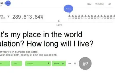 Poi il sito dà una breve timeline della propria esistenza: giorno di nascita, giorno della maggiore età, giorno nel quale c'erano 4 miliardi di persone nel mondo e la data attuale. Poi compare un veloce report di quante persone nel mondo condividono con voi la data di nascita: sempre nel caso di chi scrive, 31.091 in India, 627 in Arabia saudita, 125 in Papua Nuova Guinea, 34 nel Qatar. Poi c'è un curioso calcolo immediato di quale sarebbe la nostra aspettativa di vita se noi vivessimo in un Paese diverso dall'Italia. E, infine, la data presunta di morte come "cittadino del mondo" e l'aspettativa di vita, espressa in giorno-mese-anno di morte, come cittadino italiano. E la differenza matematico-statistica generata dalla media non è da poco, perché per chi scrive queste righe la data di morte come "cittadino del mondo" è fissata il 18 maggio 2038, mentre come "cittadino dell'Italia" è il 17 gennaio 2044.