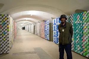 L’allestimento della mostra è stato curato dall’artista internazionale Maurice Pefura che si è chiesto «con cosa posso coinvolgere e far lavorare in modo artistico delle persone detenute? La risposta è stata nel formato “ristretto” [come nel gergo burocratico delle carceri viene definito il detenuto ndr] del post-it», spiega l’artista. Così l’opera si compone di migliaia e migliaia di piccole finestre disegnate ad acquarello alternate da centinaia di post-it colorati scritti o disegnati dalle persone che vivono dietro le sbarre: i carcerati così come gli agenti di Polizia penitenziaria.