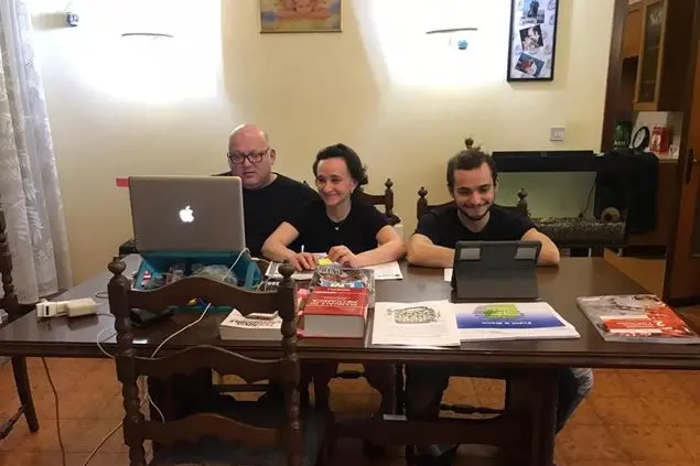 (Nella foto in alto, Walter Pozzatello, 49 anni, la moglie Maria, 45 e il figlio Michael 19 mentre fanno lezione a distanza)