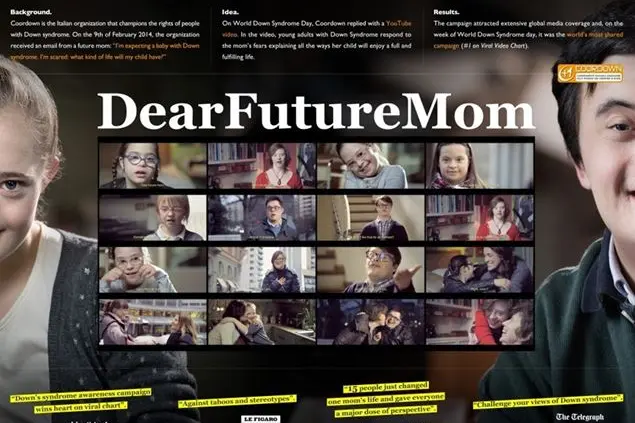 Tutto ha origine da un bellissimo video realizzato e prodotto da CoorDown (Coordinamento Nazionale associazioni delle persone con sindrome di Down) nel 2014 per la campagna globale “Dear Future Mom” in occasione della Giornata Mondiale sulla sindrome di Down. Realizzato in collaborazione con diverse realtà internazionali, il filmato, un toccante racconto corale, fu trasmesso dalle TV e diffuso sui social network di tutto il mondo. Il messaggio, lanciato in diverse lingue da bambini e ragazzi di differenti paesi europei, rispondeva alla domanda di una futura mamma spaventata per aver scoperto che il bambino che attendeva aveva la sindrome di Down: «Ho paura. Non so che vita avrà mio figlio…». «A volte sarà difficile. Quasi impossibile. Ma non è così per tutte le mamme?» è la risposta. E nel finale: «Le persone con la sindrome di Down possono avere una vita felice. Anche grazie a tutti noi».