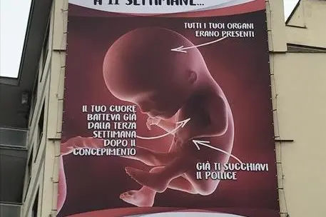 Si parla di aborto e scoppia immancabile la polemica. Stavolta a provocarla è stato il mega-manifesto fatto affiggere nei giorni scorsi a Roma dall’associazione ProVita nell’ambito di una campagna di sensibilizzazione a 40 anni dalla legge 194 sull’aborto: un tazebao di sette metri per undici d’altezza, sulla parete di un edificio di via Gregorio VII con una gigantografia di un bambino nel grembo materno. Titolo: “Tu eri così a 11 settimane” e ancora delle “didascalie” recitanti: “Tutti i tuoi organi erano presenti”, “Il tuo cuore batteva già dalla terza settimana dopo il concepimento”, “Già ti succhiavi il pollice”.