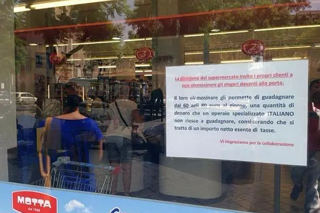 “Non date l’elemosina agli zingari davanti alla porta”: questo l’invito che la direzione di un supermercato di Catania ha rivolto ai suoi clienti attraverso un cartello affisso all’ingresso. Motivazione: permette “un guadagno dai 60 agli 80 euro, una quantità di denaro che un operaio specializzato italiano non riesce a guadagnare, considerando il fatto che si tratta di un importo netto esentasse”. Non c’è alcun intento razzista, spiega ancora il responsabile dell’esercizio commerciale, ma solo quello di tutelare il supermercato e i clienti, che infastiditi dai questuanti, iniziano a non frequentarlo più.