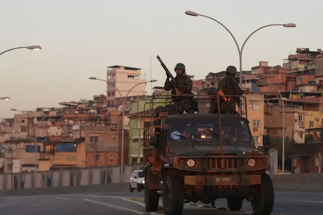 (Foto Reuters: militari durante un'operazione nel Complexo da Maré a Rio)