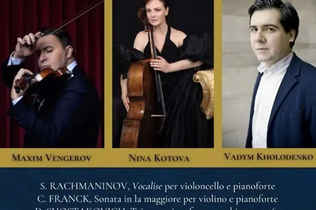 Vengerov, fuoriclasse del violino, russo di origine siberiana, oggi ha la cittadinanza israeliana. La violoncellista Nina Kotova è russa di Mosca, mentre il pianista Vadym Kholodenko è ucraino originario di Kyiv.