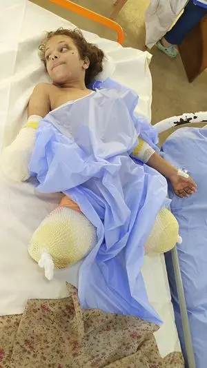 Nour è nata il 28 dicembre 2015. Aveva appena nove anni quando un’esplosione l’ha travolta. I medici sono stati costretti ad amputarle entrambe le gambe e la mano destra. Ora, anche l’unico arto rimasto rischia di essere amputato. Il personale sanitario fa tutto il possibile per evitarlo, ma a Gaza mancano strutture adeguate e specialisti capaci di eseguire un intervento ricostruttivo avanzato. Nour soffre inoltre di una grave depressione e di dolori cronici, che non trovano sollievo a causa della mancanza di farmaci, inclusi gli analgesici di base.