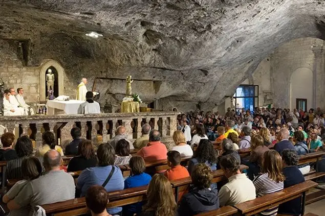 Le Messe nella grotta dell’arcangelo si celebrano alle 7.30, 9, 10.30, 12, con l’ora solare alle 15.30, 16.30 e 18, con l’ora legale alle 16, 17.30 e 19.
