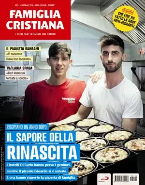 E sul numero in edicola di Famiglia Cristiana il servizio a cui è dedicata anche la copertina sui figli maggiori di Sebastiano e Nadia Di Carlo, la coppia che perse la vita sotto il crollo dell’hotel, mentre miracolosamente si salvò il figlio più piccolo Edoardo. Ora Riccardo e Pierdomenico Di Carlo, 20 e 18 anni, hanno ridato vita alla pizzeria aperta dal padre a Loreto Aprutino (Pescara) e che dal giorno della tragedia era rimasta chiusa. Una storia di speranza e di riscatto.