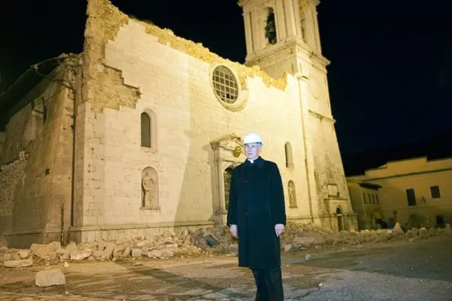 Gli occhi si velano di tristezza. Monsignor Renato Boccardo osserva le macerie della pieve di San Salvatore lungo la strada di una delle valli dimenticate del terremoto che ha squassato l’Italia centrale. Si sale da Norcia verso Preci, strade di san Benedetto, tratturi di montagna con l’asfalto sfondato, alberi riversi e sassi che rotolano. Dell’antica badia non restano che pietre sbriciolate. Aveva due rosoni e un ciclo di affreschi che raccontavano la storia dei luoghi, storia sacra e storia civile che da queste parti si sono sempre intrecciate. Non c’è differenza tra le case e le chiese.