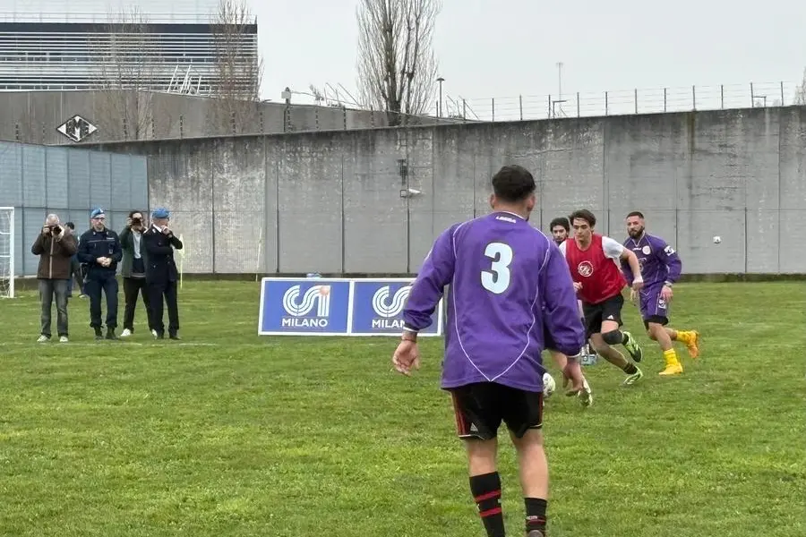 Dalle finestre, dietro le inferriate, altri detenuti osservano. Hanno spostato i panni stesi per avere visuale migliore. Gridano consigli, ridono, commentano. Non è la curva dello Stadio Giuseppe Meazza, ma l’intensità è autentica.