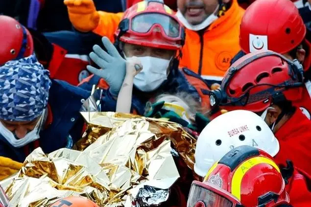 La manina di Elif Perinçek, stringe il dito guantato del vigile del fuoco che con i colleghi la sta trasportando su una lettiga al posto di primo soccorso: uno scroscio di applausi liberatori ha salutato il momento in cui il corpo impolverato della bambina di 3 anni è stata estratto dalle macerie della sua causa crollata per la violenta scossa di terremoto di magnitudo 7,0 che ha devastato la provincia di Smirne (Turchia) facendo 100 vittime. Una di esse è un fratellino di Elif, mentre la mamma con altre due fratelli era stata estratta quasi subito. 65 ore è rimasta sepolta tra le mura crollate, ma i suoi lamenti hanno fatto da guida ai soccorritori che non si sono arresi e sono riusciti a trarla in salvo. I capelli biondi, il visetto pallido, in mezzo alle grida dei vigili del fuoco e dei curiosi che si accalcavano intorno a lei, è rimasta in silenzio, un occhio tumefatto e l’altro a fissare stupita quello che accadeva, nessun gesto di disperazione, nessun pianto, solo quella mano che ha cercato il contatto con chi l’aveva salvata. Elif è stata poi trasportata in ospedale, dove l’hanno raggiunta i familiari. Sta bene, solo qualche tumefazione, e la capacità dei bambini di reagire, di salutare l’occhio della telecamera dal lettino in cui c’era una nuova bambola a farle compagnia. I terremoti sono tra i disastri naturali che ci fanno sentire più impotenti: al dramma di chi perde immediatamente la vita si unisce quello di chi è rimasto vivo, ma sommerso dai detriti. C’è l’angoscia delle lunghe ore, a volte giorni, a sentire la vita che pian piano se ne va, in totale solitudine, aggrappati alla speranza che qualcuno riesca a tirarli fuori di lì. E per i sopravvissuti salvataggi come questo che hanno del miracoloso servono a ridare speranza. Chi esce vivo da lì è figlio, fratello di tutti, a maggior ragione se si tratta di una bambina. In salvo anche la quattordicenne Idil Sirin, estratta dalle macerie dopo essere rimasta intrappolata per 58 ore. Sono stati 106 in tutto le persone recuperate dalla macerie. Il sisma ha raggiunto anche l’isola greca di Samos, causando la morte di due ragazzi e numerosi danni agli edifici e anche al campo profughi