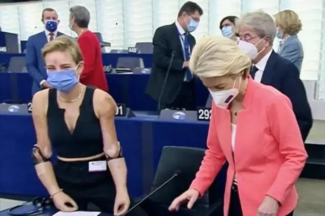 Se ce l’ha fatta Bebe Vio, può farcela anche l’Europa. È il senso della scelta, da parte di Ursula Von der Leyen, di avere al suo fianco la formidabile campionessa paralompica di scherma il giorno in cui ha pronunciato il suo discorso sullo stato dell’Unione Europea davanti al Parlamento europeo. "Ad aprile le avevano detto che rischiava di morire, poi è riuscita a vincere una medaglia olimpica", ha detto la presidente della Commissione europea citando la campionessa, a cui è stato dedicato un lungo e caloroso applauso. Von der Leyen ha elogiato Bebe Vio come "una leader, immagine della sua generazione, da cui trarre ispirazione" per la sua determinazione.
