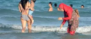 Una ragazza in burkini gioca col suo cellulare ultima generazione sotto l'ombrellone, ogni tanto lancia un'occhiata al suo bambino che armeggia con secchiello e paletta. Poco più in là, il marito chiacchiera con due amici o fratelli, tutti e tre in shorts, tatuaggi ben in vista in contrasto con la barba islamica: una scena diventata piuttosto ordinaria sui lidi del sud francese. «Non é conforme ai nostri valori», ha tuonato Manuel Valls. Da qualche settimana in Francia il costume integrale delle donne musulmane è protagonista della cronaca nazionale e occupa buona parte dei telegiornali locali. Da quando il sindaco di Cannes David Lisnard ha bandito il costume integrale islamico dalle spiagge della Croisette, non passa giorno senza che un nuovo eletto con la fascia tricolore si mobiliti per vietare l'uso dei burkini nel suo municipio.