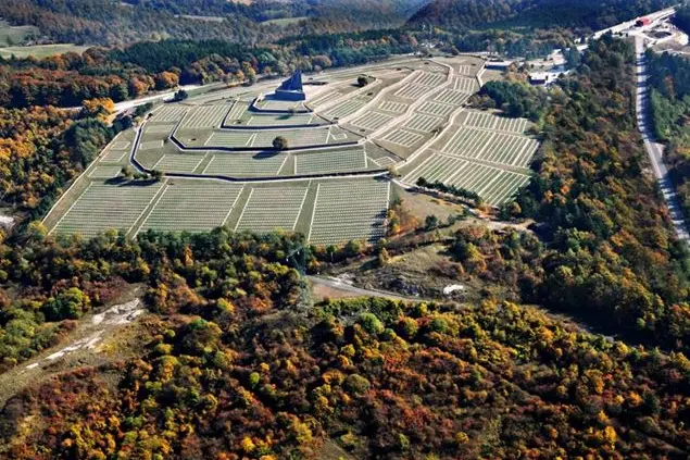 A concepire questa stupefacente opera paesaggistico-architettonica fu Dieter Oesterlen (1911-1994), uno degli architetti protagonisti della ricostruzione della Germania nel Dopoguerra, per dare pace eterna a questi uomini, perlopiù giovani (la maggior parte di loro aveva un’età compresa fra i 16 e i 30 anni), mandati dalla follia di Hitler a combattere sulla famigerata Linea Gotica per bloccare l’avanzata da Sud verso Nord delle forze alleate. Terre di combattimenti atroci e violenze inaudite, come ben sapevano gli abitanti di queste zone, che all’edificazione di questo cimitero guardavano con diffidenza e manifestarono il loro dissenso. Dissenso che, raccontano le cronache di allora, cessarono proprio il giorno dell’inaugurazione, il 28 giugno 1969, quando dai pullman arrivati dalla Germania scesero 2.000 madri, gli occhi bagnati non solo dalla pioggia battente di quella giornata, per deporre finalmente un garofano sulla tomba del figlio: «Il dolore è uguale per tutti, queste duemila donne piangono come tutte le mamme del mondo», scrisse un cronista in uno dei rari articoli del tempo.