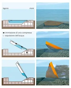 Anche se l’accento è spostato sulla prima sillaba, alla veneziana, il suo nome, acronimo di Modello Sperimentale Elettromeccanico, allude al patriarca biblico che divise in due il Mar Rosso e creò un passaggio all’asciutto per il suo popolo in fuga dall’Egitto. Finora di biblico però ci sono solo i tempi: l’iter legislativo del “Progettone”del sistema di paratoie che come ponti levatoi devono proteggere Venezia dalle maree è del 1966, al tempo dell’acqua granda che il 4 novembre di quell’anno sommerse la Laguna fino a un metro e 96 centimetri.