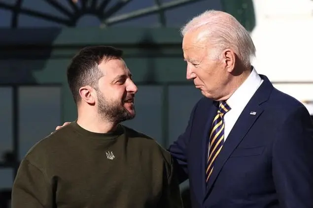 Dopo 300 giorni di guerra era la prima volta che Zelensky lasciava l’Ucraina. Zelensky, che non ha rinunciato alla sua tenuta di presidente combattente (pantaloni e maglione verde) è stato accolto da Biden alla Casa Bianca.
